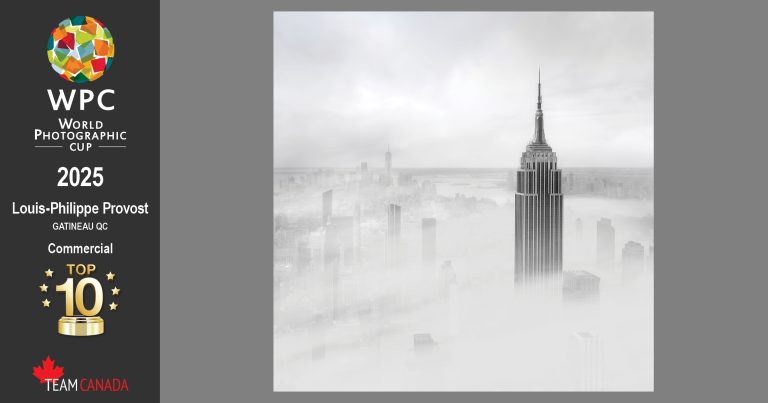 The excitement kicked off with the announcement in the Commercial category, where Louis-Philippe Provost, a returning team member from Quebec, earned a Top 10 spot for his stunning image of New York City shrouded in fog. “I couldn’t be prouder! Representing Canada four times has been an incredible journey, and every time my images are recognized, it fills me with happiness and pride all over again” said Louis-Philippe.