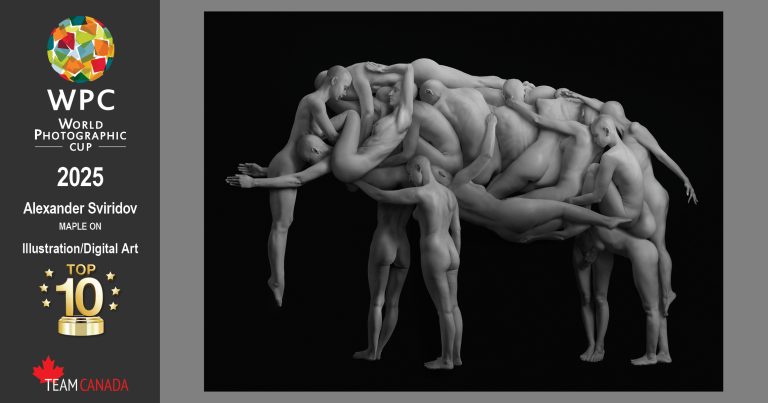 Next Alexander Sviridov, from Ontario, earned a Top 10 honour for his Illustration/Digital Art image of female forms gracefully merging to create an elephant, bridging the boundary between humanity and nature. Alexander paused his Caribbean cruise to tune in for the virtual announcement. Beaming with excitement, he shared, “This is an incredible honour—truly a dream come true. To see my passion for photography recognized with such an award is beyond words!”