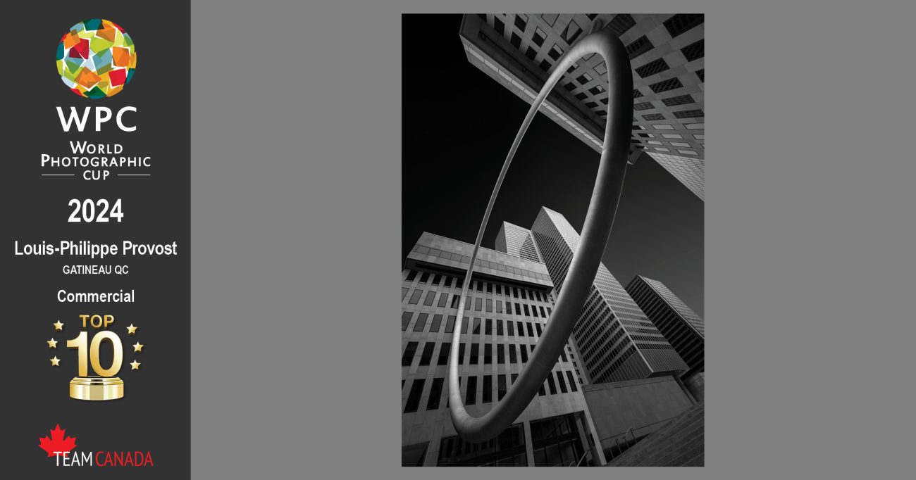Hailing from Quebec, Louis-Philippe Provost’s was Canada’s second Top 10 in the Commercial category with an image that showcases Montreal’s suspended sculpture “The Ring”. In response to his third time as a finalist Provost said, “I am extremely humbled and grateful to be in the Top 10 once again and congratulations to Team Canada’s other six talented photographers for their incredible images.”