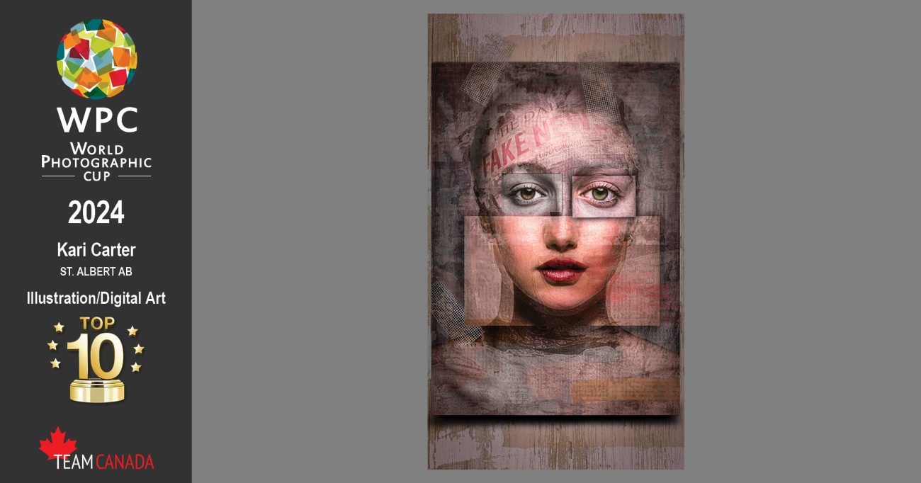 In the Illustration/Digital Art category, Kari Carter from Alberta, was a Top 10 finalist for her creative image that symbolizes the intricate layers of expectations placed upon women. When they announced she was in the Top 10 Carter was speechless, “probably because I was crying, and so was my husband,” she explained. “Having previously served in the Canadian Forces it is truly an honour to represent my country again but this time through my love of photographic art. Keep the flag waving.”