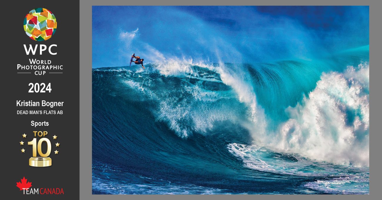 In the brand-new category of Sports, we saw another finalist from Alberta, Kristian Bogner’s remarkable image of pro surfer Kai Lenny launching off a gigantic wave holds a lot of energy. “It was the right place at the right moment,” said Bogner who admits a Top 10 finish in Sports is very meaningful after having photographed the Olympic games and sporting events for years. “It is always an honour to be a part of Team Canada, which was stacked full of stunning images this year. To be recognized in this category feels amazing,” said Bogner.