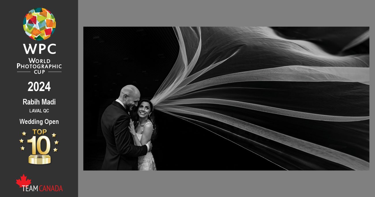 Canada’s final Top 10 was in the Wedding Open category. From Quebec, Rabi Madi’s image on a windy wedding day, showcases a sense of movement as the bride’s flowing veil fills the entire frame. “I was shocked, surprised and happy. In a category of such strong images this is truly humbling. I have been on Team Canada four times and this is my first Top 10 placement. I am deeply grateful for this remarkable recognition – it’s such an amazing moment,” exclaimed Madi.