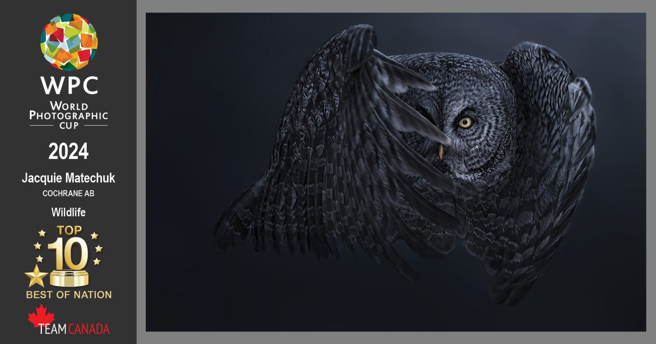 For Jacquie Matechuk, also from Alberta, the World Photographic Cup always has been about camaraderie. Marking her second time as a Top 10 finalist, Matechuk says “WPC is unlike any other photographic competition, the foundation is built on teamwork and the pride of representing your nation with your fellow creatives.” Matechuk’s remarkable Wildlife image of a great grey owl moving silently through the air and looking right at her mid-flight also earned a Best of Nation Award as Canada’s top scoring image. “I am so grateful for the tremendous wisdom and support of our Team Captains, Jillian Chateauneuf and Gerry David. As well as the vision and guidance of our curators, who went above and beyond to craft a world-class team! One team, one goal, one nation and proud of it,” she remarked.